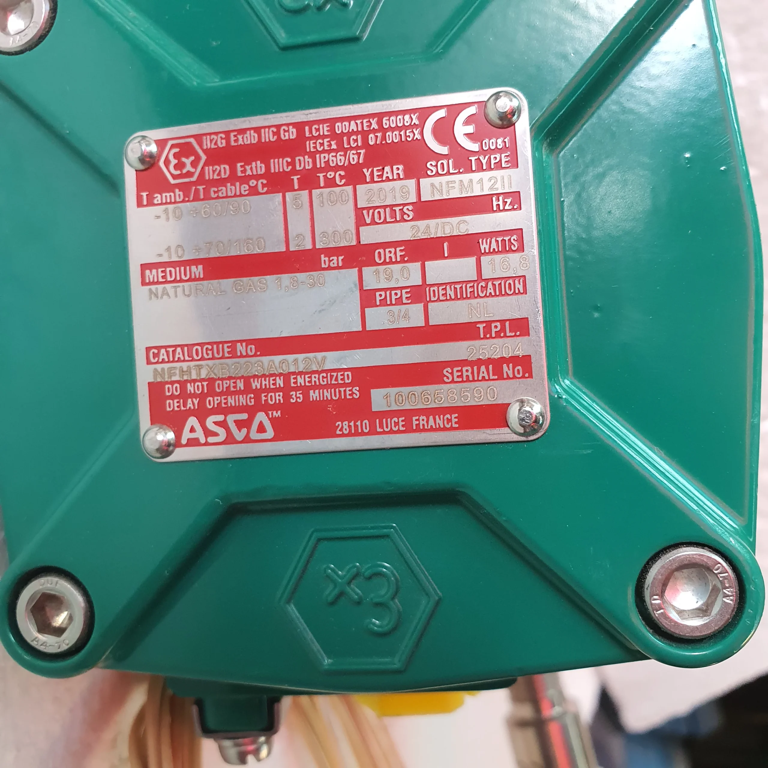 ASCO NFHTXB223A012V, TYPE NFM12II, V 24/DC, NATURAL GAS 1,8-30, PIPE 3/4, Solenoid valve